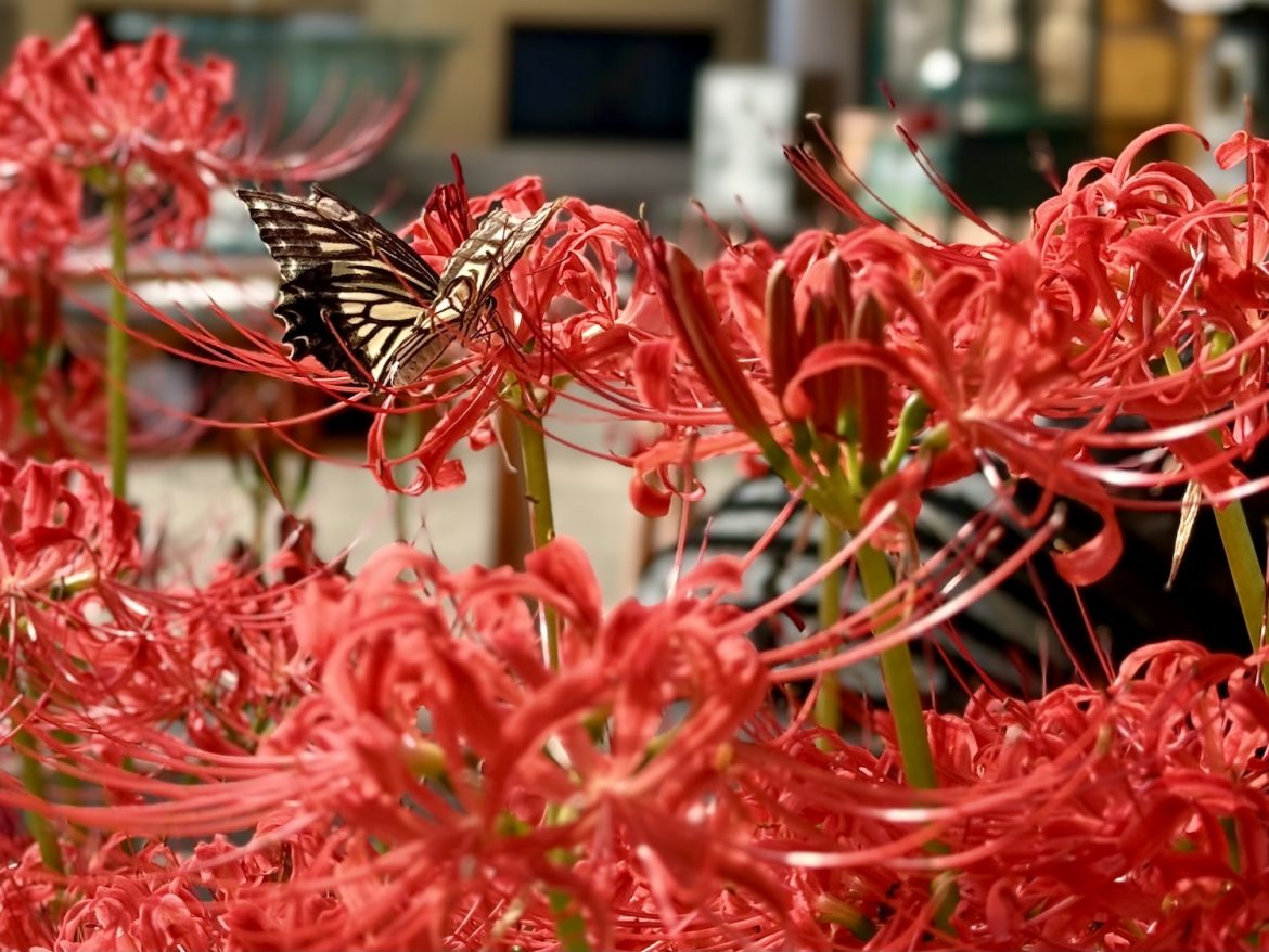 第一五〇回 令和七年の彼岸花 第一五〇回 令和七年の彼岸花 第一四九回 令和七年 慈眼寺の夏 Posted by jigenji on 2025年10月3日 in 季節, 植物 例年より少々遅れて、彼岸花が見ごろを迎えつつあります。時期がずれ込んだのは猛暑の影響でしょうか。 あちこちで白い彼岸花も咲いており、赤も白もまぶしく目に映ります。 Share this article: 0 About jigenji Related Articles 第九十八回 虹が見えた日 第一一七回 お彼岸のひととき 第八十九回 春のお彼岸(令和三年) 第八十三回 十二月のイチョウ