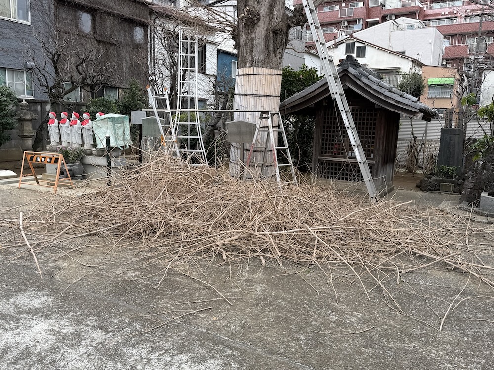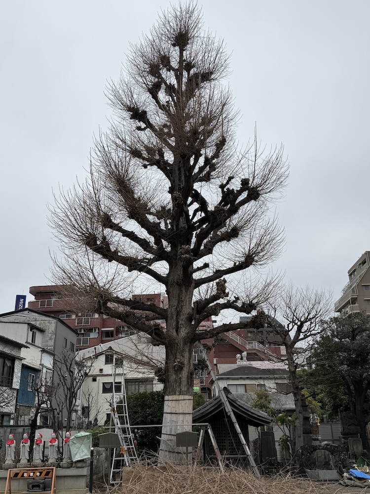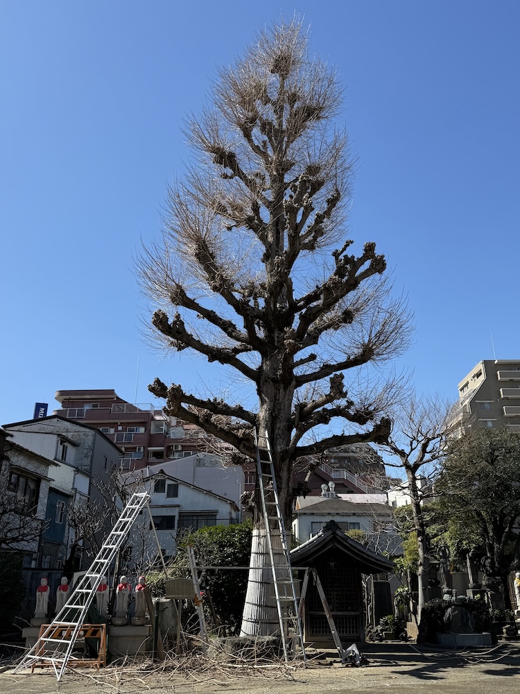 第一五六回 イチョウの枝おろしが終わりました 第一五六回 イチョウの枝おろしが終わりました 第一五五回 境内が雪化粧に包まれました Posted by jigenji on 2026年3月16日 in 季節, 植物 3月頭から2週間ほど掛けて行われていた、境内の大イチョウの枝おろしが終わりました。 小枝でうっそうとしていた幹が、今ではすっきりと気持ちよさそうに見えます。 降ろした枝の一部が、巨大な鳥の巣のようになっていました。 Share this article: 0 About jigenji Related Articles 第八十三回 十二月のイチョウ 第九十七回 朝顔の季節 第一二三回 令和五年 花祭り挙行のご報告 / お釈迦さまと白い象 第八十回 芸術の秋 【小説:『落花 らっか』】